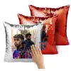 lamine yamal FCB, Μαξιλάρι καναπέ Μαγικό Κόκκινο με πούλιες 40x40cm περιέχεται το γέμισμα
