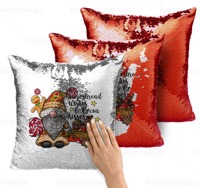 Gingerbread Wishes, Μαξιλάρι καναπέ Μαγικό Κόκκινο με πούλιες 40x40cm περιέχεται το γέμισμα