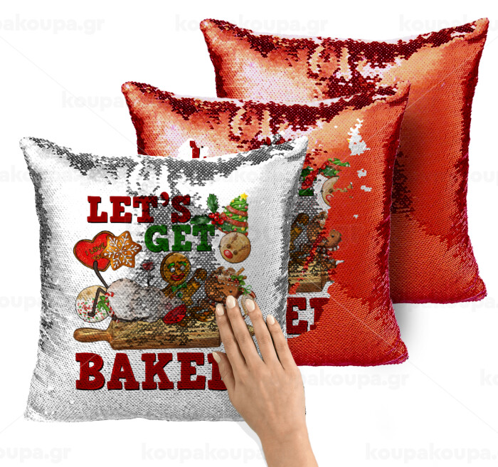 Let's get baked, Μαξιλάρι καναπέ Μαγικό Κόκκινο με πούλιες 40x40cm περιέχεται το γέμισμα