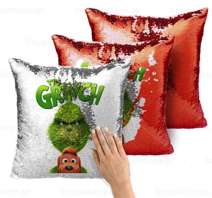 mr grinch, Μαξιλάρι καναπέ Μαγικό Κόκκινο με πούλιες 40x40cm περιέχεται το γέμισμα