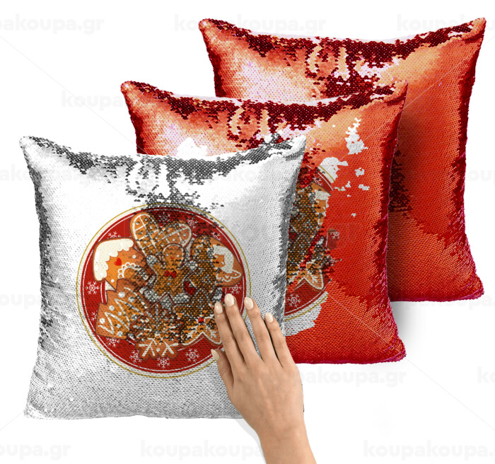 xmas cookies, Μαξιλάρι καναπέ Μαγικό Κόκκινο με πούλιες 40x40cm περιέχεται το γέμισμα