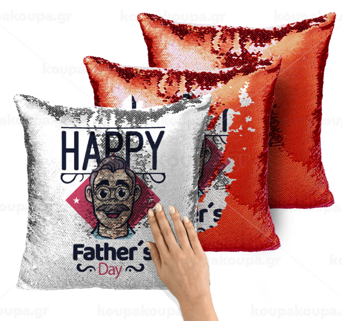 Για την γιορτή του μπαμπά!, Μαξιλάρι καναπέ Μαγικό Κόκκινο με πούλιες 40x40cm περιέχεται το γέμισμα
