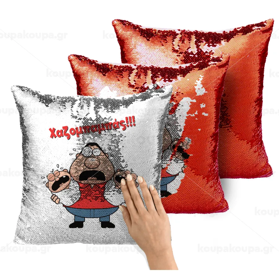Χαζομπαμπάς σε απόγνωση, Μαξιλάρι καναπέ Μαγικό Κόκκινο με πούλιες 40x40cm περιέχεται το γέμισμα
