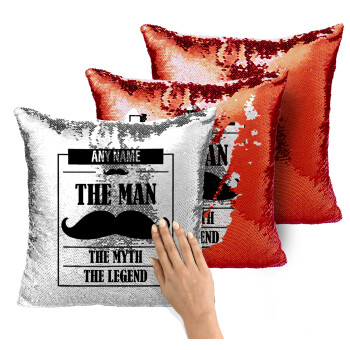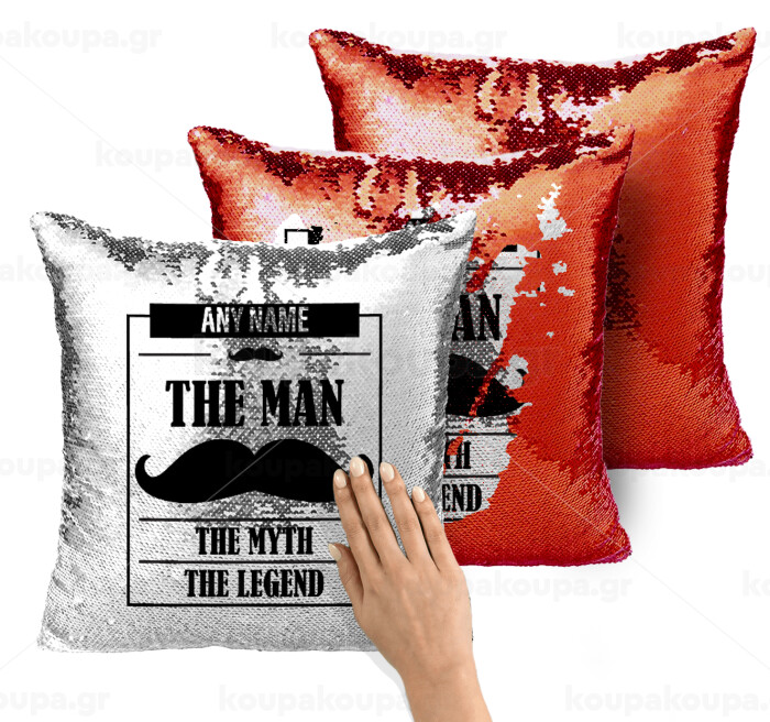 The man, the myth, Μαξιλάρι καναπέ Μαγικό Κόκκινο με πούλιες 40x40cm περιέχεται το γέμισμα