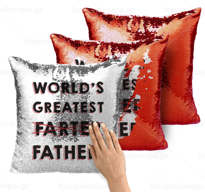 World's greatest farter, Μαξιλάρι καναπέ Μαγικό Κόκκινο με πούλιες 40x40cm περιέχεται το γέμισμα