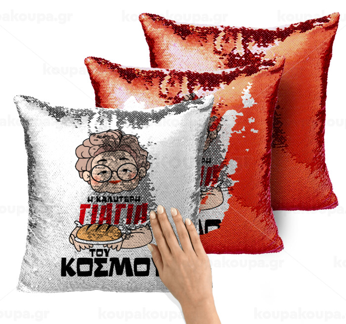 Η καλύτερη γιαγιά του κόσμου!, Μαξιλάρι καναπέ Μαγικό Κόκκινο με πούλιες 40x40cm περιέχεται το γέμισμα