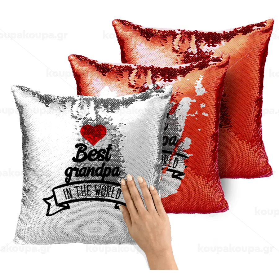 Best Grandpa in the world, Μαξιλάρι καναπέ Μαγικό Κόκκινο με πούλιες 40x40cm περιέχεται το γέμισμα
