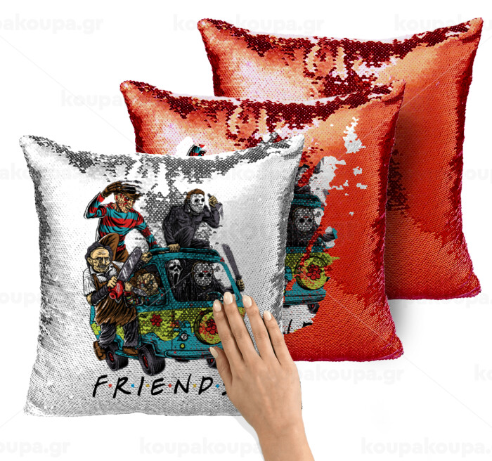 Halloween Friends Scooby Doo, Μαξιλάρι καναπέ Μαγικό Κόκκινο με πούλιες 40x40cm περιέχεται το γέμισμα