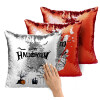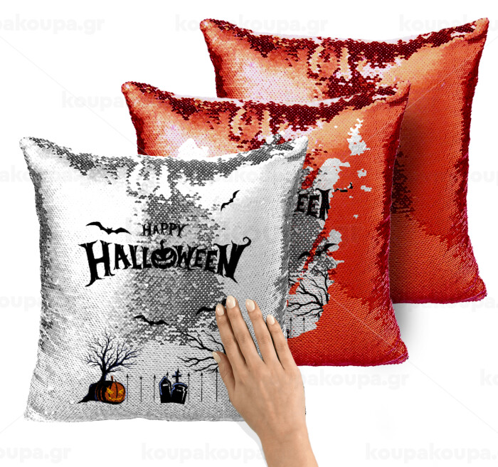 Happy Halloween cemetery, Μαξιλάρι καναπέ Μαγικό Κόκκινο με πούλιες 40x40cm περιέχεται το γέμισμα