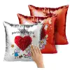 Μανούλα σ'αγαπώ!, Μαξιλάρι καναπέ Μαγικό Κόκκινο με πούλιες 40x40cm περιέχεται το γέμισμα