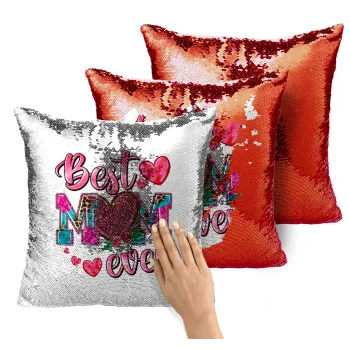 Best mom ever Mother's Day pink, Μαξιλάρι καναπέ Μαγικό Κόκκινο με πούλιες 40x40cm περιέχεται το γέμισμα