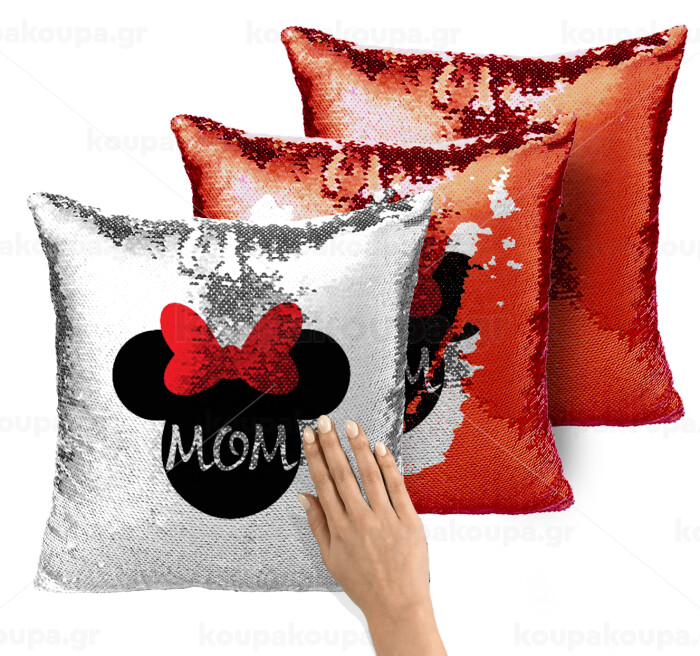 mini mom, Μαξιλάρι καναπέ Μαγικό Κόκκινο με πούλιες 40x40cm περιέχεται το γέμισμα