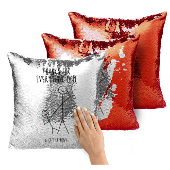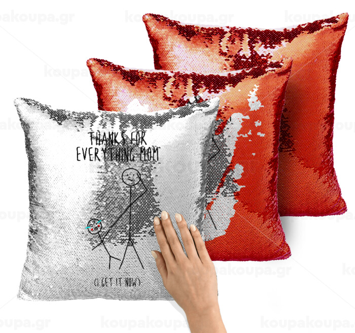 Thanks for everything mom, Μαξιλάρι καναπέ Μαγικό Κόκκινο με πούλιες 40x40cm περιέχεται το γέμισμα