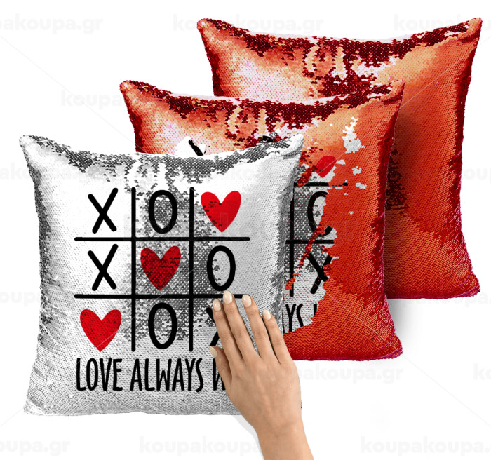 Love always win, Μαξιλάρι καναπέ Μαγικό Κόκκινο με πούλιες 40x40cm περιέχεται το γέμισμα