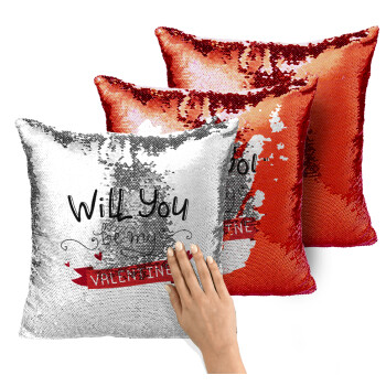 Will you be my Valentine???, Μαξιλάρι καναπέ Μαγικό Κόκκινο με πούλιες 40x40cm περιέχεται το γέμισμα