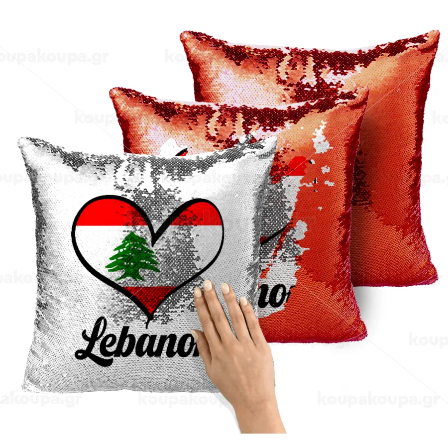 Lebanon flag, Μαξιλάρι καναπέ Μαγικό Κόκκινο με πούλιες 40x40cm περιέχεται το γέμισμα