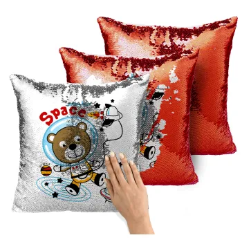Ο μικρός αστροναύτης, Μαξιλάρι καναπέ Μαγικό Κόκκινο με πούλιες 40x40cm περιέχεται το γέμισμα