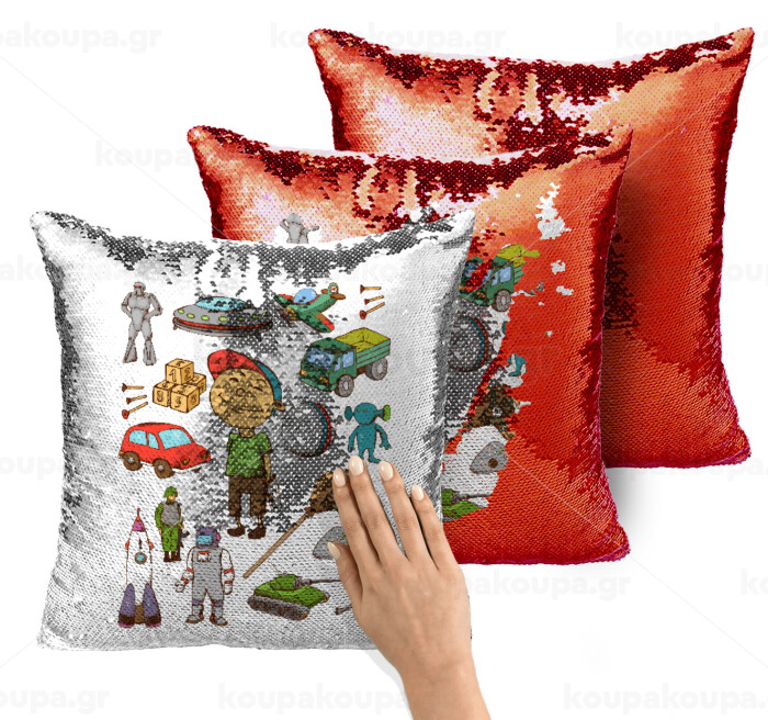 Toys Boy, Μαξιλάρι καναπέ Μαγικό Κόκκινο με πούλιες 40x40cm περιέχεται το γέμισμα