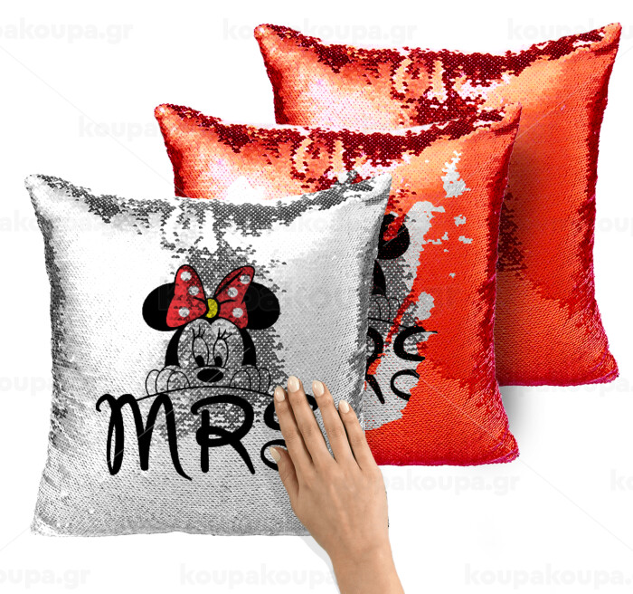 Minnie Mrs, Μαξιλάρι καναπέ Μαγικό Κόκκινο με πούλιες 40x40cm περιέχεται το γέμισμα