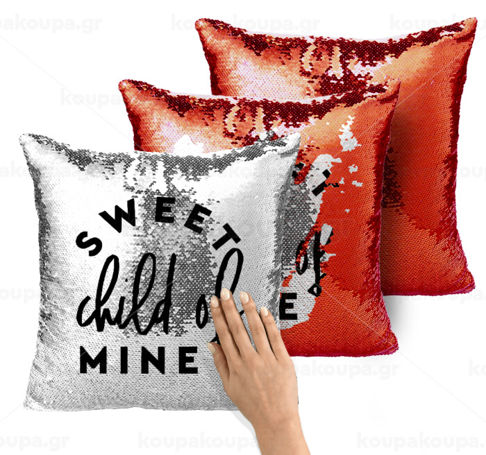Sweet child of mine!, Μαξιλάρι καναπέ Μαγικό Κόκκινο με πούλιες 40x40cm περιέχεται το γέμισμα