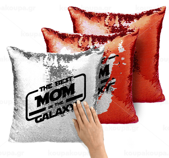 The Best MOM in the Galaxy, Μαξιλάρι καναπέ Μαγικό Κόκκινο με πούλιες 40x40cm περιέχεται το γέμισμα