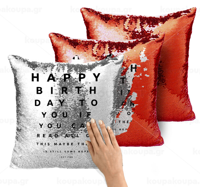 EYE tester happy birthday., Μαξιλάρι καναπέ Μαγικό Κόκκινο με πούλιες 40x40cm περιέχεται το γέμισμα