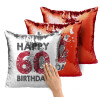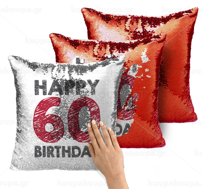 Happy 60 birthday!!!, Μαξιλάρι καναπέ Μαγικό Κόκκινο με πούλιες 40x40cm περιέχεται το γέμισμα
