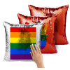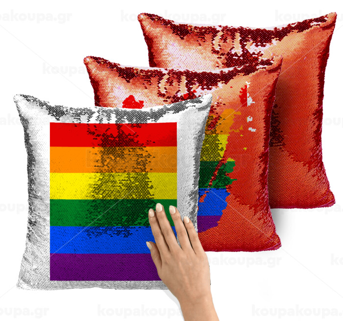 Rainbow flag (LGBT) , Μαξιλάρι καναπέ Μαγικό Κόκκινο με πούλιες 40x40cm περιέχεται το γέμισμα