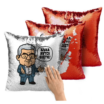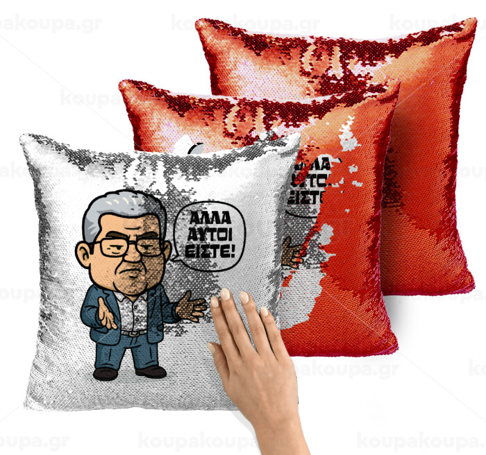 Κουτσούμπας, "Αλλά αυτοί είστε!", Μαξιλάρι καναπέ Μαγικό Κόκκινο με πούλιες 40x40cm περιέχεται το γέμισμα