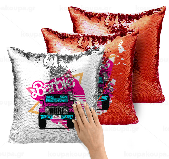 Barbie car, Μαξιλάρι καναπέ Μαγικό Κόκκινο με πούλιες 40x40cm περιέχεται το γέμισμα