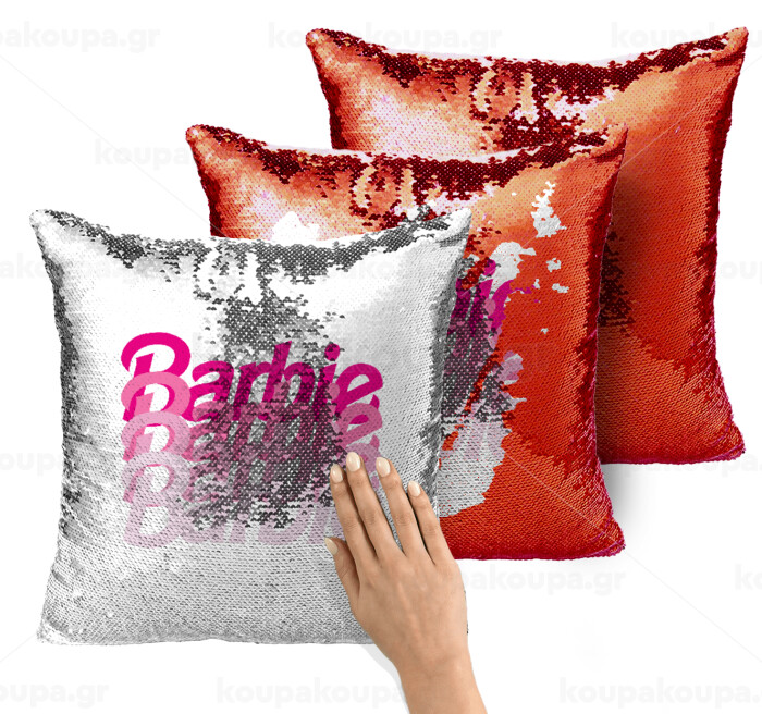 Barbie repeat, Μαξιλάρι καναπέ Μαγικό Κόκκινο με πούλιες 40x40cm περιέχεται το γέμισμα