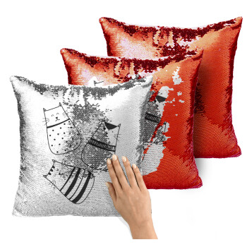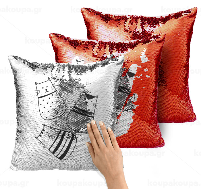 Cute cats, Μαξιλάρι καναπέ Μαγικό Κόκκινο με πούλιες 40x40cm περιέχεται το γέμισμα