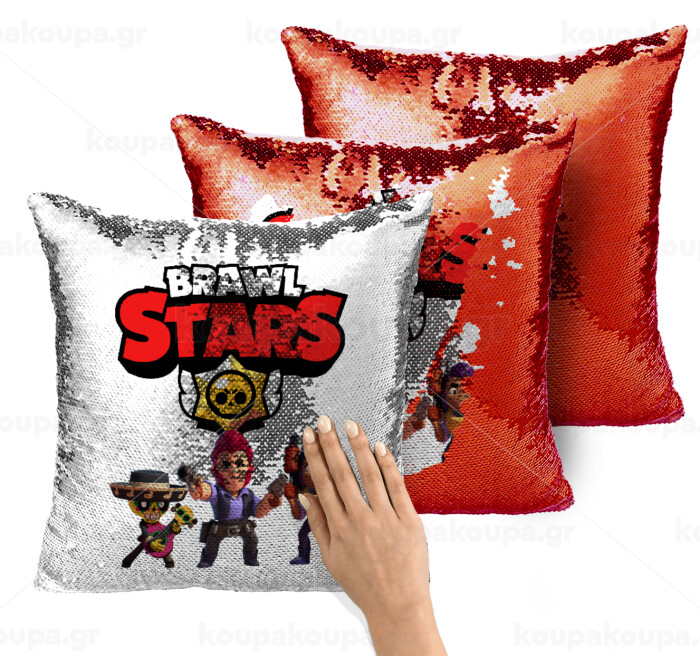 Brawl Stars Desert, Μαξιλάρι καναπέ Μαγικό Κόκκινο με πούλιες 40x40cm περιέχεται το γέμισμα