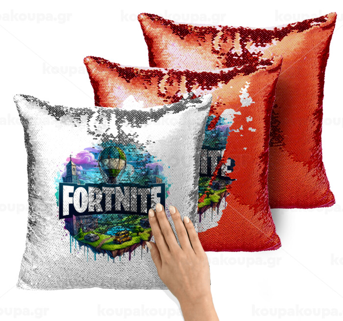 Fortnite land, Μαξιλάρι καναπέ Μαγικό Κόκκινο με πούλιες 40x40cm περιέχεται το γέμισμα