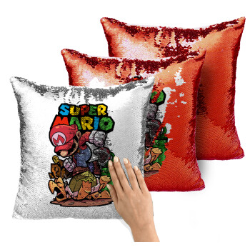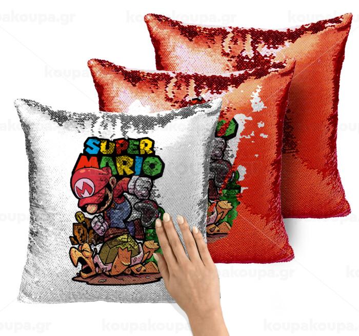 Super mario Jump, Μαξιλάρι καναπέ Μαγικό Κόκκινο με πούλιες 40x40cm περιέχεται το γέμισμα
