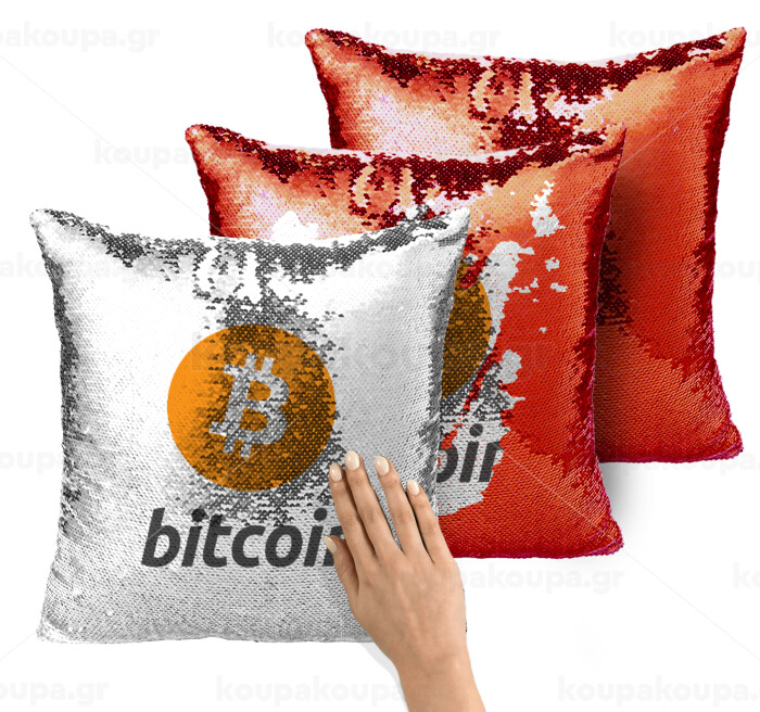 Bitcoin, Μαξιλάρι καναπέ Μαγικό Κόκκινο με πούλιες 40x40cm περιέχεται το γέμισμα