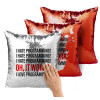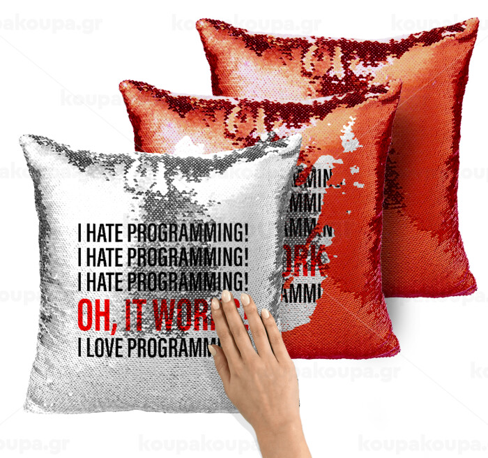 I hate programming!!!, Μαξιλάρι καναπέ Μαγικό Κόκκινο με πούλιες 40x40cm περιέχεται το γέμισμα