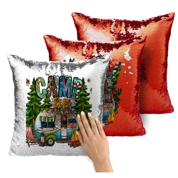 Camp Life, Μαξιλάρι καναπέ Μαγικό Κόκκινο με πούλιες 40x40cm περιέχεται το γέμισμα