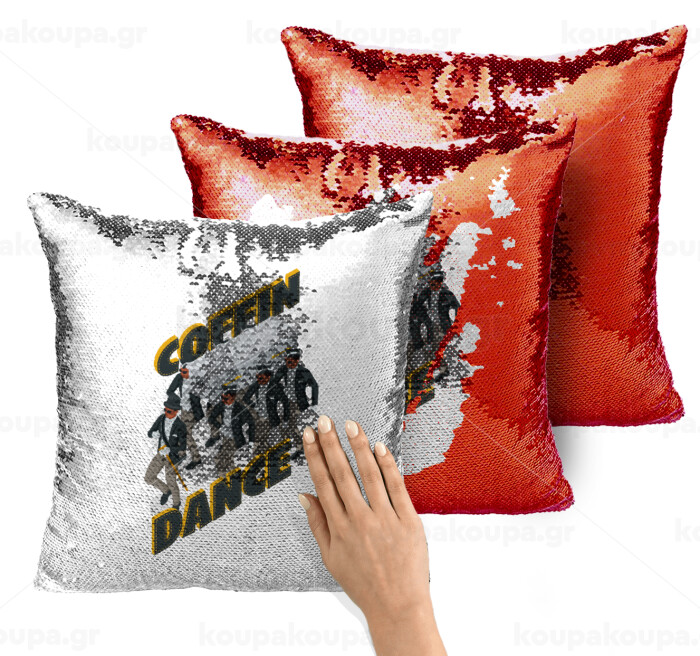 Coffin Dance!, Μαξιλάρι καναπέ Μαγικό Κόκκινο με πούλιες 40x40cm περιέχεται το γέμισμα