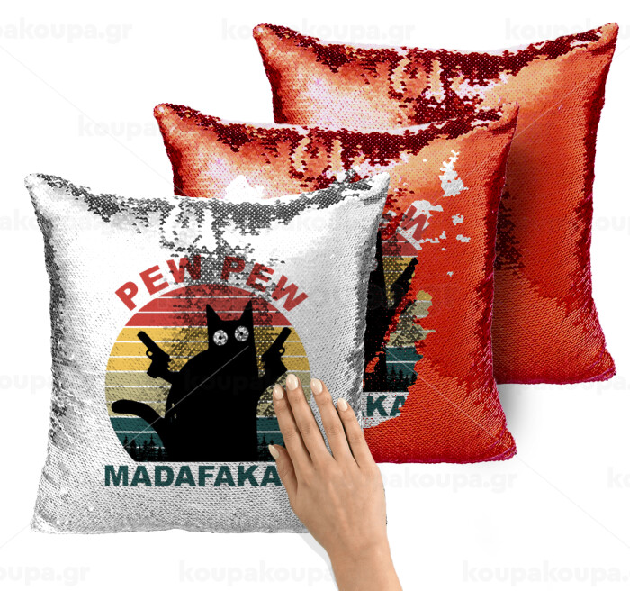 PEW PEW madafakas, Μαξιλάρι καναπέ Μαγικό Κόκκινο με πούλιες 40x40cm περιέχεται το γέμισμα
