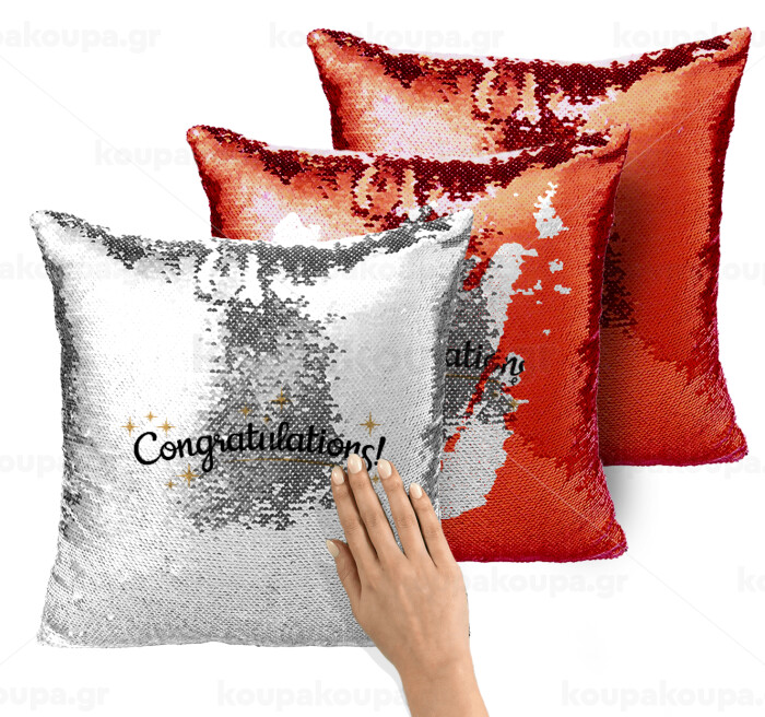 Congratulations, Μαξιλάρι καναπέ Μαγικό Κόκκινο με πούλιες 40x40cm περιέχεται το γέμισμα