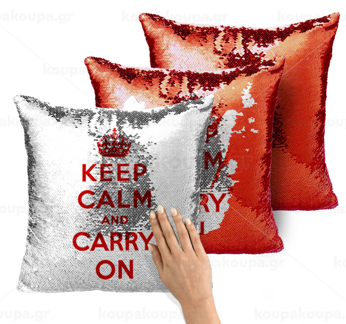 KEEP CALM  and carry on, Μαξιλάρι καναπέ Μαγικό Κόκκινο με πούλιες 40x40cm περιέχεται το γέμισμα