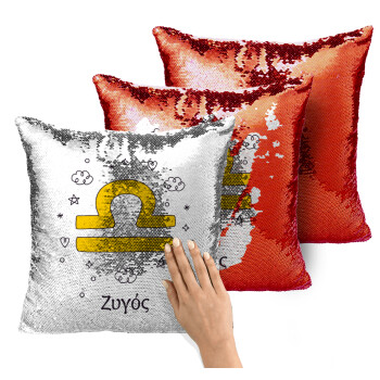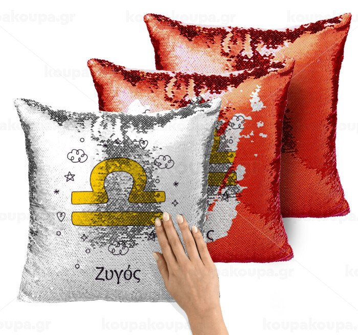 Ζώδια Ζυγός, Μαξιλάρι καναπέ Μαγικό Κόκκινο με πούλιες 40x40cm περιέχεται το γέμισμα