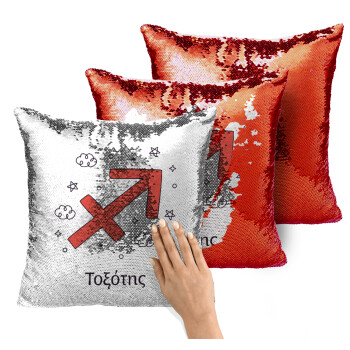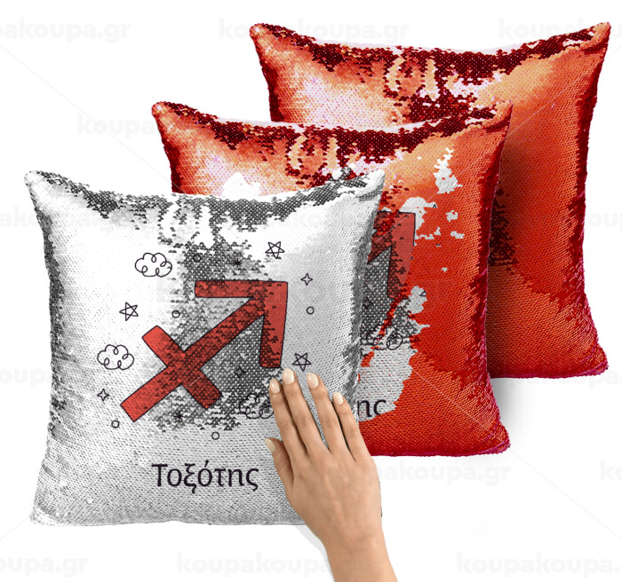 Ζώδια Τοξότης, Μαξιλάρι καναπέ Μαγικό Κόκκινο με πούλιες 40x40cm περιέχεται το γέμισμα