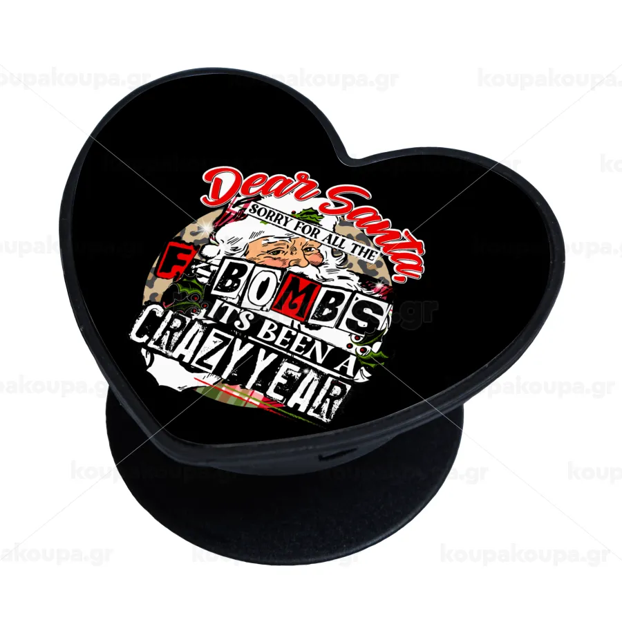 Dear Santa, sorry for all the F-bombs, Phone Holders Stand καρδιά Μαύρο Βάση Στήριξης Κινητού στο Χέρι