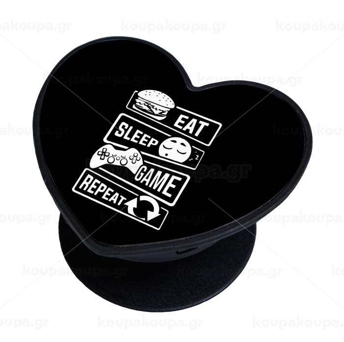 Eat Sleep Game Repeat, Phone Holders Stand καρδιά Μαύρο Βάση Στήριξης Κινητού στο Χέρι