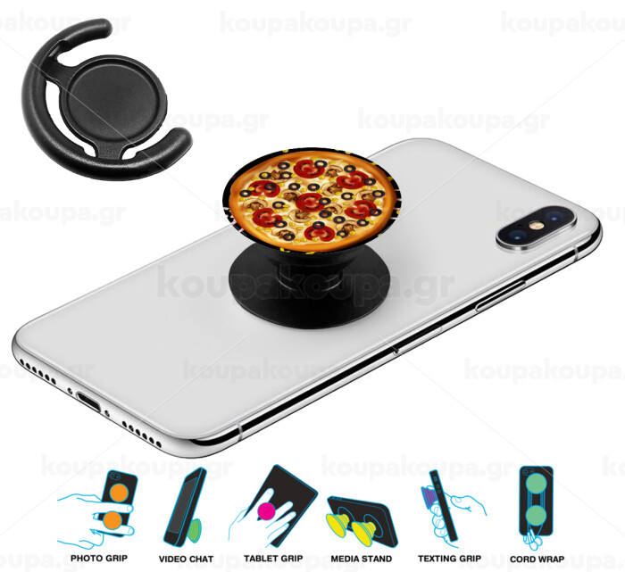 Pizza, Phone Holders Stand Μαύρο Βάση Στήριξης Κινητού στο Χέρι