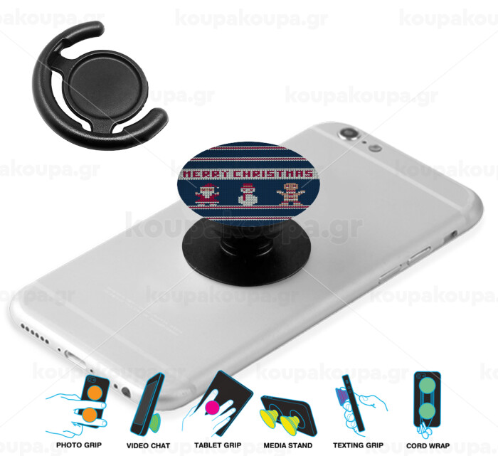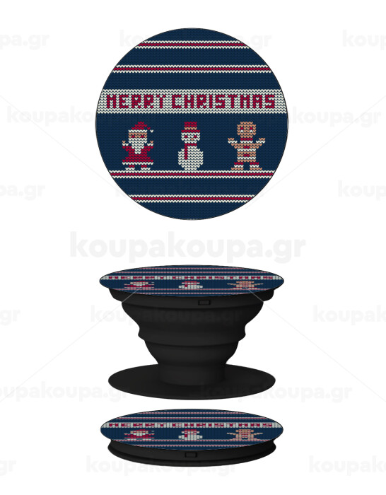 Merry christmas knitted, Phone Holders Stand Μαύρο Βάση Στήριξης Κινητού στο Χέρι