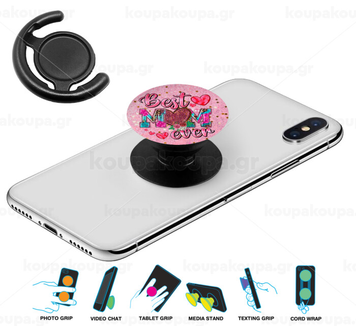 Best mom ever Mother's Day pink, Phone Holders Stand Μαύρο Βάση Στήριξης Κινητού στο Χέρι