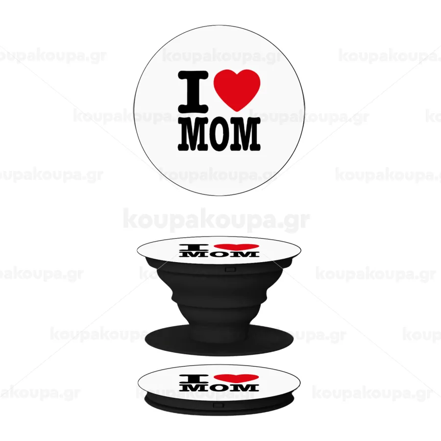 I LOVE MOM, Phone Holders Stand Μαύρο Βάση Στήριξης Κινητού στο Χέρι